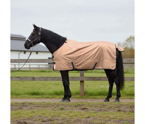 - Augstas kvalitātes poliesters: Segas izgatavota no ūdensnecaurlaidīga poliestera, nodrošinot aizsardzību pret lietu un sniegu. Izturīgais materiāls iztur laika apstākļus, nodrošinot optimālu siltumu un saglabājot zirgus sausus, sniedzot mieru īpašniekam. Turklāt tā mašīnas mazgājama īpašība padara tīrīšanu vieglu, nodrošinot ilgstošu lietošanu.