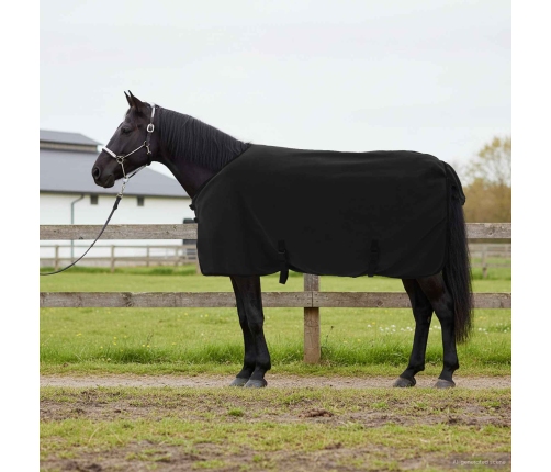 - Materiāla detaļas: Šis segums ir izgatavots no izturīga poliestera, kas nodrošina lielisku izturību pret nelabvēlīgiem laikapstākļiem. Samtainā tekstūra piešķir greznu sajūtu un komfortu, lai zirgs paliktu silts bez kairinājuma.