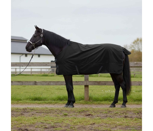 • Augstas kvalitātes poliesters: Segas izgatavota no ūdensnecaurlaidīga poliestera, nodrošinot aizsardzību pret lietu un sniegu. Izturīgais materiāls iztur laika apstākļus, nodrošinot optimālu siltumu un saglabājot zirgus sausus, sniedzot mieru īpašniekam. Turklāt tā mašīnas mazgājama īpašība padara tīrīšanu vieglu, nodrošinot ilgstošu lietošanu.