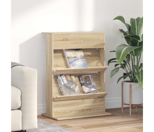 - Materiāli: Pilnībā izgatavots no inženierijas koka, šis žurnālu plaukts sniedz gludu virsmu, kas iekļaujas mūsdienu dekorā. Inženierijas koks ir izvēlēts, jo ir izturīgs un tam ir vienmērīga tekstūra, kas nodrošina ilgmūžību un piešķir eleganci jebkurai telpai. Šim materiālam ir arī zema svars, kas atvieglo plaukta pārvietošanu.