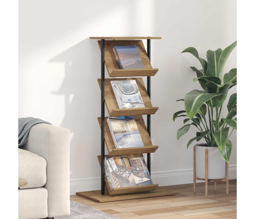 - Kvalitatīvs inženierijas koks: Šis žurnālu plaukts ir izgatavots no izturīga inženierijas koka, kas ir izturīgs pret ikdienas nodilumu. Gludā apdare piešķir modernu izskatu un ir viegli tīrāma, kā arī izturīga pret traipiem un skrāpējumiem.
