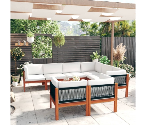 Dārza mēbeļu komplekts ir izgatavots no kvalitatīva akācijas masīvkoka – tropu cietkoka, kas ir noturīgs pret dažādiem laikapstākļiem un ļoti izturīgs. Pateicoties eļļas pārklājumam, mēbelēm ir silta krāsa un tās ir viegli kopjamas. Sūtījumā ir iekļauti biezi polsterēti sēdekļa matrači un atzveltnes spilveni, lai nodrošinātu maksimālu komfortu.