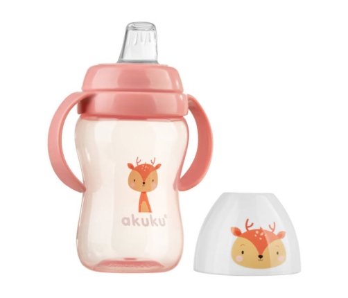 Kubek z silikonowym ustnikiem przeznaczony jest dla dzieci od szóstego miesiąca życia. Świetnie sprawdzi się zarówno w domu, na spacerze, jak i np. podczas zabawy. Wygodne szerokie uchwyty i ergonomiczny kształt ułatwiają trzymanie kubeczka w małych rączkach, a miękki silikonowy ustnik nie podrażnia delikatnych dziąseł i pierwszych ząbków dziecka. Umożliwia picie bez rozlewania. Bardzo lekki, co jest dużym plusem przy użytkowaniu przez dziecko. Zaletą kubka jest również jego łatwość mycia oraz specjalna pokrywka zabezpieczająca ustnik przed zabrudzeniem. Odporny na uszkodzenia.