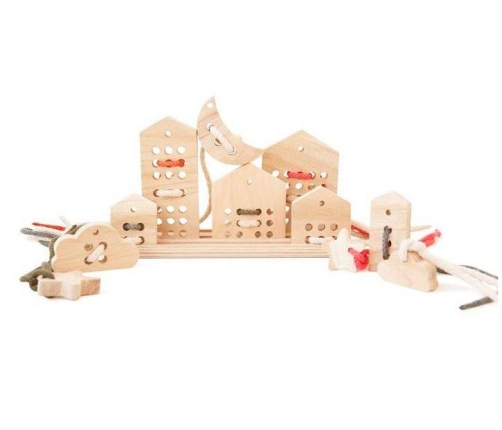 Babai Drewniana Zabawka Sznurowanka Zestaw Naturalny