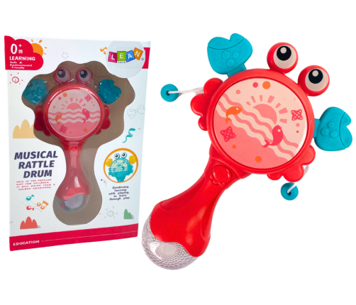 The redrattle, with the motif of a jolly crab on a drum, is made of high-quality certified plastic, which is a completely safe material for a small child. The blue tongs are made of soft plastic, which is a guarantee that the baby will not hurt himself during the merry play.