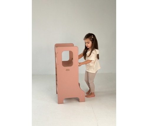 Konstrukcja Kitchen Helpera została dobrze przemyślana po to, żeby jak najlepiej służył Waszemu maleństwu. Zaokrąglone ranty zmniejszają ryzyko skaleczenia się, a specjalne szczebelki zabezpieczają dziecko przed wypadnięciem czy poślizgnięciem. Dodatkową zaletą jest możliwość regulacji wysokości podnóżka- możesz wybrać jeden z trzech poziomów, dopasowując Kitchen Helper do wzrostu dziecka i blatu kuchennego. To także pewność, że pomocnik posłuży Wam przez lata, "rosnąc" razem z dzieckiem. Kolejnym ułatwieniem jest schodek, który ułatwia dziecku wejście na podest.
