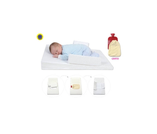Wykonany w kształcie klina z otworami wentylacyjnymi, zapobiega zakrztuszeniu się dziecka w wyniku ulewania. Głównym atutem produktu jest możliwość umieszczenia w nim termofora z ciepłą wodą, który ogrzewa brzuszek maluszka, uśmierzając bóle spowodowane kolką.