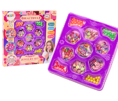 The set includes an elastic string on which you can thread beads. It is easy to use, making jewelry making simple and fun for children.