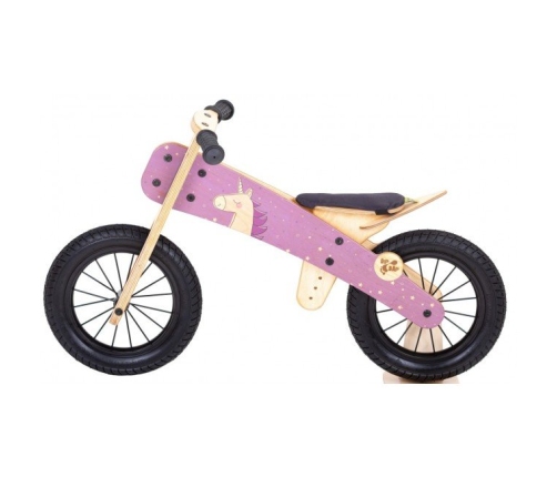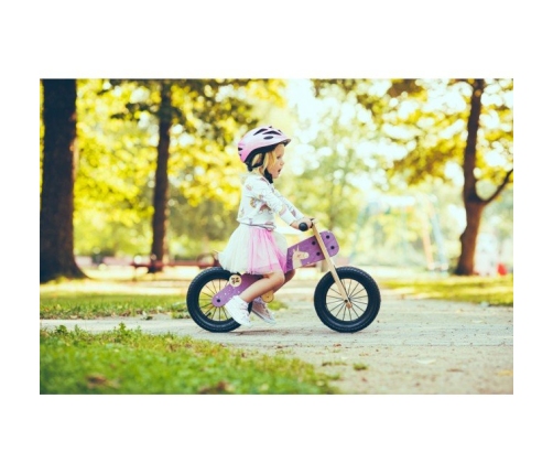 Беговой велосипед оснащен резиновыми пневматическими 12 дюймовыми колесами на черными металлических дисках с подшипниками, что обеспечивает легкое перемещение на беговом велосипеде.