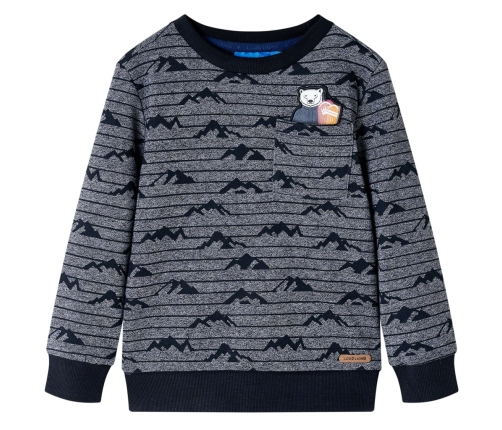 Šim bērnu džemperim ir garas piedurknes, apaļš kakla izgriezums, viena krūšu kabata un rievotas roku aproces, kakla izgriezums un apakšdaļa. Uz bērnu džempera redzamas svītras, kalni un izšūts lācis. Bērnu džemperis ir šūts no patīkama un elpojoša materiāla, kas satur 50% kokvilnu un 50% poliesteru. Mīkstā flīsa odere nodrošina papildu siltumu.
