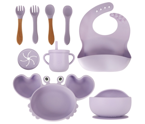 BĒRNU SILIKONA TRAUKU KOMPLEKTS KRABJI 9 GABALIŅI VIOLETS