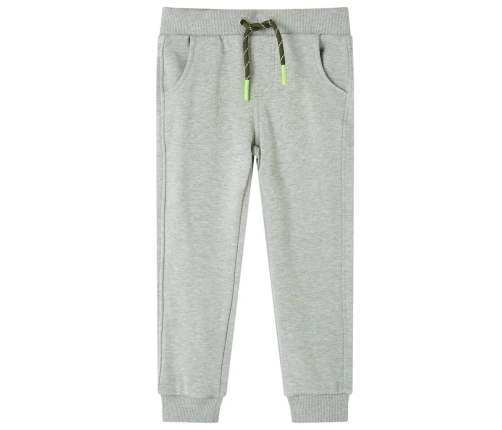 Šīm bērnu sporta biksēm ir savelkama jostasvieta, divas priekšējās kabatas, aizmugures kabata un rievota adījuma kāju aproces. Bērnu bikses ir izgatavotas no mīkstas un ērtas kokvilnas un poliestera.