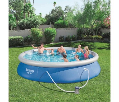 Šajā Bestway baseinā Fast Set 57313 ar piepūšamu augšmalas riņķi jūs varēsiet atvēsināties karstās vasaras dienās.