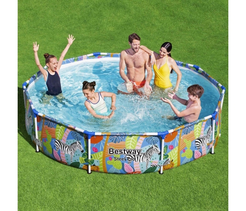 Šajā Bestway Steel Pro peldbaseinā jūs varēsiet pavadīt lielisku laiku kopā ar ģimeni un draugiem. Pateicoties apaļajai formai, tam ir liela platība peldēšanai un rotaļām. Šis izturīgais un stilīgais baseins ar krāsainu dzīvnieku apdruku piešķirs jūsu dārzam vai pagalmam enerģiju un jautrību.
