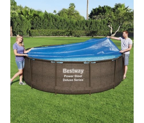Pagariniet peldēšanās sezonu ar šo Bestway solāro baseina pārklāju! Tas ir piemērots Fast Set un Steel Pro baseiniem, kuru diametrs ir 366 cm.