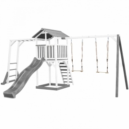 AXI Drewniany Duży Plac Zabaw Huśtawki Zjeżdżalnia Wieża + Piaskownica - Biały