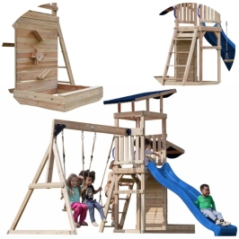 AXI Plac Zabaw Drewniany Wieża z Huśtawką Drabinki Wspinaczkowe Zjeżdżalnia XLL