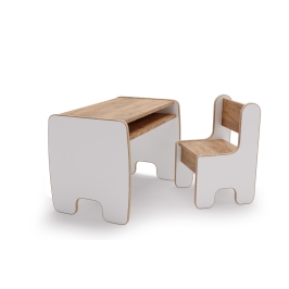 Children's Timi table and two chairs MDF colour white / oak craft gold