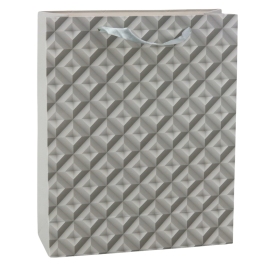 3D Geometry Effect Gift Bag Gray 32 x 26 x 10.5 cm