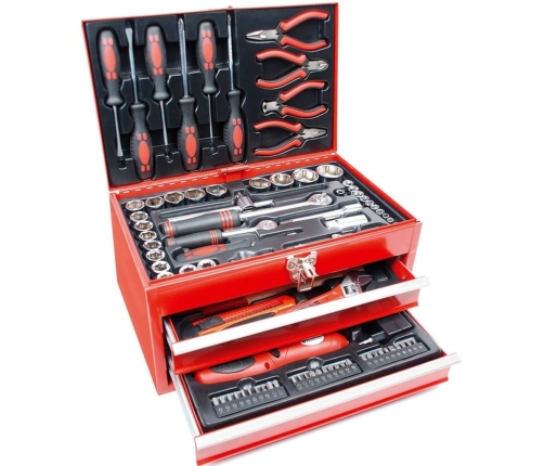 Ar šo lielo Brüder Mannesmann zīmola instrumentu komplektu, kas sastāv no 155 daļām, jūs varēsiet paveikt jekburu darbu paša spēkiem. Tas lieliski noderēs mājā, darbnīcā vai garāžā.