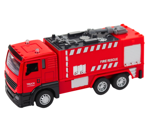 After pouring water into the tank on the roof, the toy activates the spraying water effect, which gives the impression of an authentic fire truck washing.