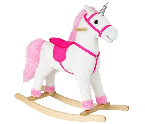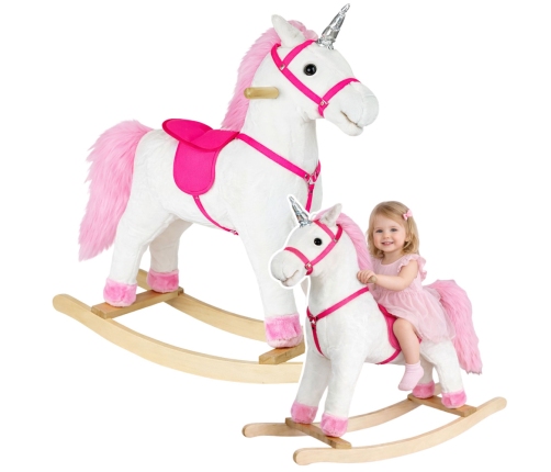As soon as your child sits on the soft plush white horse, he or she will instantly be immersed in the magical, distant world of the wild west. The rocking horse has been meticulously crafted from a pleasant to the touch material, ensuring comfort even during a long ride. His head is decorated with long, pink hair.