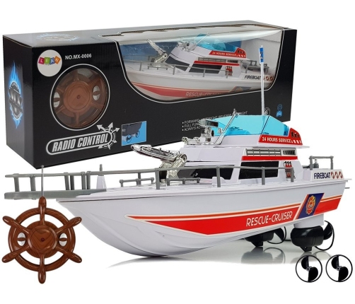 Sterowany jacht ratunkowy ma specjalną konstrukcję, która chroni przed dostaniem się wody do środka. Przycisk uruchomienia znajduje się na dachu łodzi. Przeznaczona jest ona do akcji ratunkowych na morzu, całość idealnie jest odwzorowana z każdym szczegółem. Posiada dwa niezależne silniki, dzięki czemu jest zwrotna, szybka i niezawodna. Nadaje on na częstotliwości 27 Mhz. Pilot kształtem przypomina ster prawdziwej łodzi. Możliwość jazdy w przód, tył, lewo i prawo. Dodatkowo do zestawu dołączona jest antena, która wzmocni zasięg.