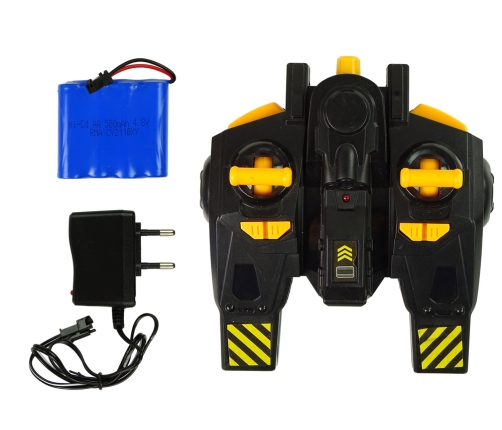 The Forklift Truck is powered by a large 4.8 V rechargeable battery which guarantees long and trouble-free play (included). The remote control is powered by three AA batteries - not included in the set. The toy is designed for children over 6 years of age.