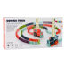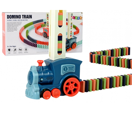 The colourful locomotive builds rows of domino cubes, which can then be beautifully knocked down and one by one the blocks will fall. Simply load the magazine, included in the set, press the button and the locomotive moves forward, leaving the vertically stacked domino blocks behind. The train makes a driving sound as it plays. It can be turned, the fireplace on the front of the locomotive serves as a steering wheel, by turning, you change the track. It can build a long row of dominoes with turns.