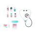 In addition to the stethoscope, the set also includes a syringe, scalpels, a patient card and many other tools and accessories. Each element of the set has been carefully designed to ensure maximum safety and comfort for young users.