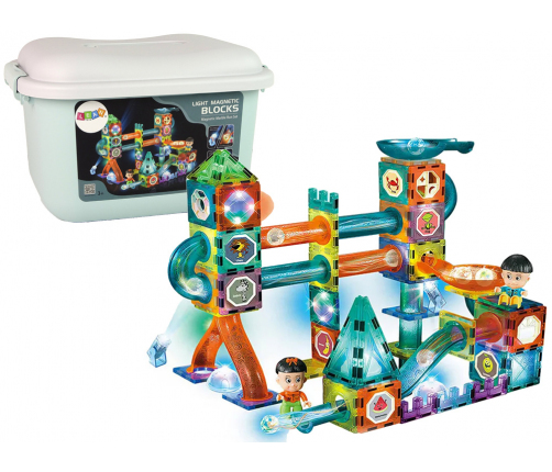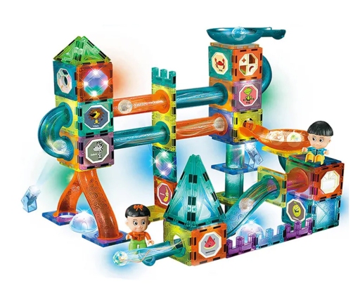 The glowing slide for balls is an exciting toy for children that will provide hours of fun and entertainment. It combines two types of toys together- magnetic blocks and a slide for balls. The toy has an educational function. It allows developing manual skills while building the track, creativity and encourages experimentation and creation of newer and newer buildings and structures.