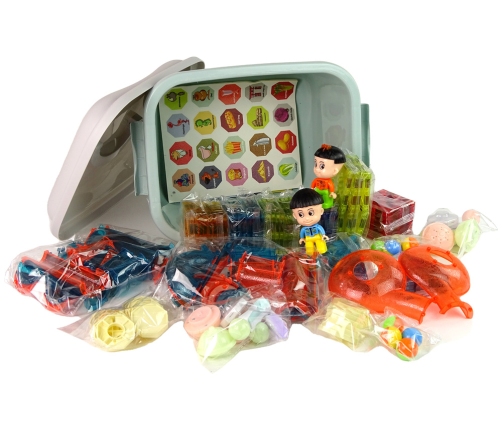 There are 150 pieces in the set. The snap box will keep things tidy and keep all the blocks in one place.