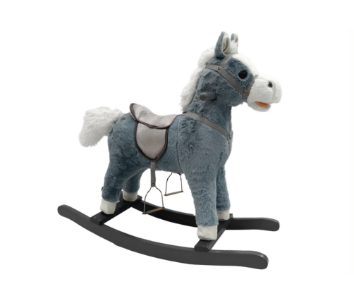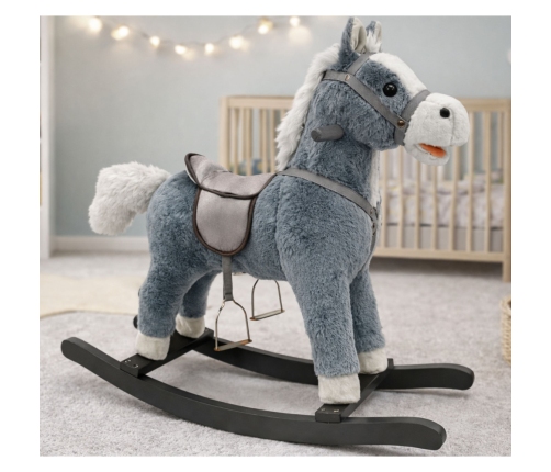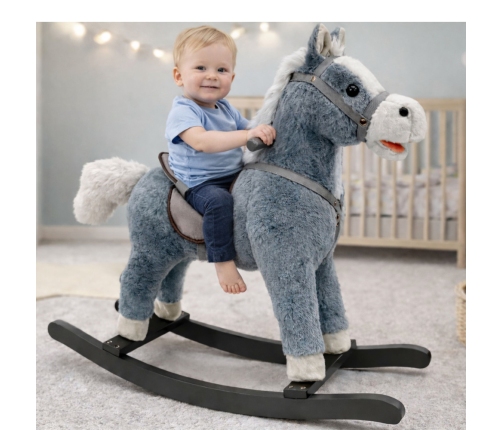 The gray rocking horse with its impressive dimensions of 74 cm x 22 cm x 48 cm is a dream for all animal and adventure lovers! Its surface is covered with a delicate, soft material that provides a pleasant touch experience.