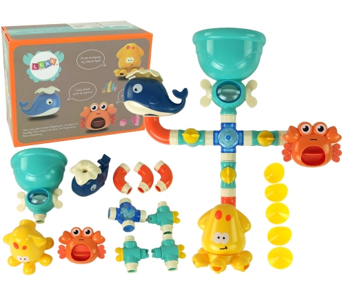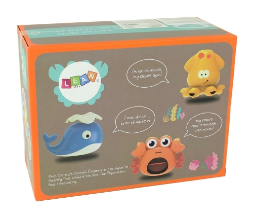 Features three adorable sea creatures: a navy blue whale, a red crab and a yellow octopus. How do they provide entertainment? It's easy! By pouring water into the upper blue reservoir, the child can watch how the water flows through various elements of the toy.