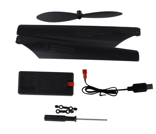 The helicopter is equipped with LED lights placed on the sides and additional lower lighting, which allows for flights after dark and increases the visual appeal of the model. The large span of the propellers - up to 39 cm - provides solid lift and stability during maneuvers.