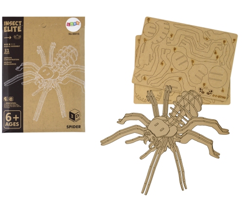A spider made of wooden 3D spatial puzzles! This is an exciting and educational experience that will connect your child with creative work, developing spatial imagination and manual skills. Our wooden model is created by systematically extruding elements from cut sheets of wooden plywood and fitting them together in accordance with the attached pictorial instructions.