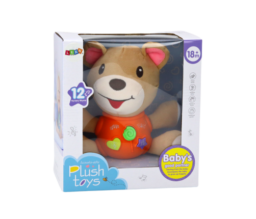An interactive teddy bear that will surely become every toddler's favorite companion! The teddy bear is made of the highest quality, very soft material, perfect for children's delicate skin. Its charming appearance and pleasant-to-touch texture make you immediately want to hug it.