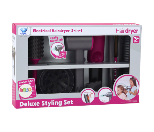 The biggest advantage of this set is its authenticity. The dryer imitates real air blowing, which adds realism to the game. Thanks to this, the child can play the role of a professional hairdresser, drying and styling the hair of dolls or other toys. The straightener is equipped with a heating light effect and produces sounds resembling the hissing of a real straightener. This makes the fun even more realistic and exciting.