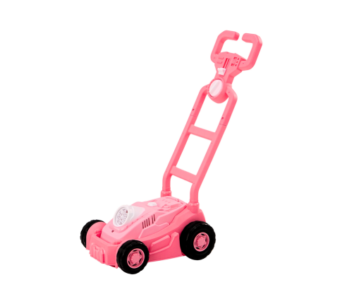 A pink soap bubble mower and a special liquid create a wonderful outdoor adventure. In addition to its aesthetic function, the mower allows the child to imagine working on a real lawn, causing a sincere smile.