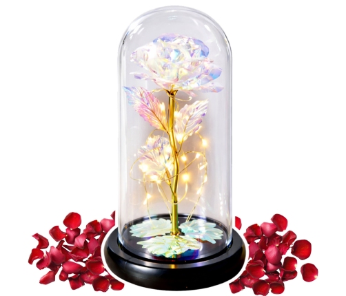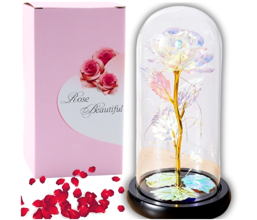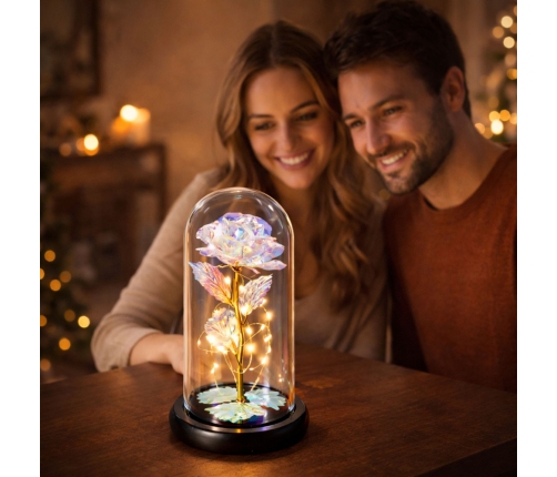 The eternal rose in a glass dome with LED lighting is an elegant and symbolic gift that will express your feelings and add a unique character to any interior. Its changing colors under the subtle LED light create an unforgettable atmosphere, perfect for romantic occasions.