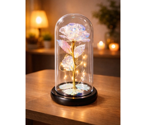 The delicate LED light highlights the beauty of the rose and creates a warm ambiance, ideal for decorating interiors and romantic moments.