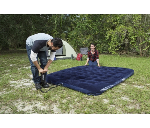 The double travel mattress is intended for both internal and external use. It was made of durable PVC material, which makes it resistant to damage. In its upper part it is covered with soft velor. The mattress adapts to the body and is perfect for a tent or at home as a spare bed for guests. If you need a mattress when going to the water or beaches, you can easily use it. Inflating it will not take you long, after the rest is finished, you can easily deflate it and transport it. Thanks to the modern Coil-Beam technology, the mattress is stable and comfortable.