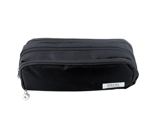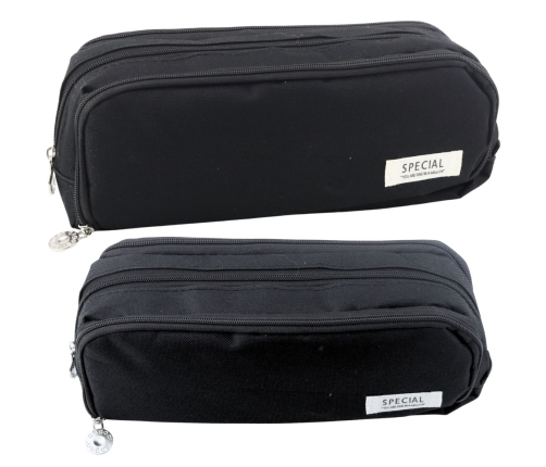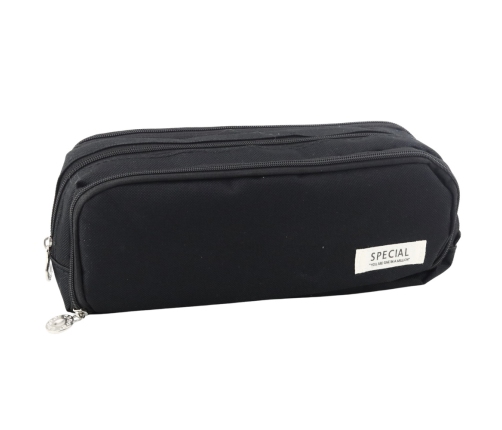 SCHOOL DOUBLE-COMPARTMENT PENCIL CASE WITH FRONT POCKET - BLACK