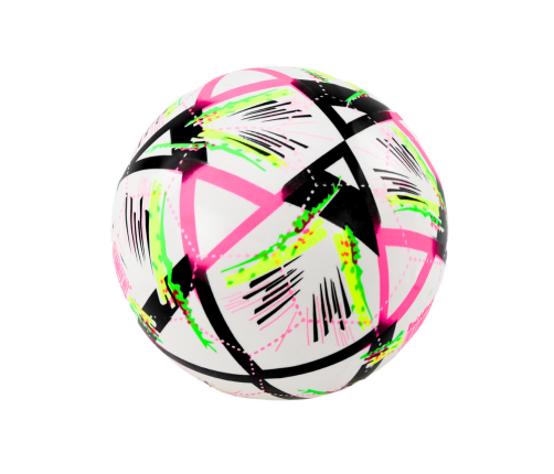 This rubber ball stands out with its bright colors that attract attention and add energy to every game. Decorated with patterns in intense shades of yellow, green, pink, white and black, it is not only visually appealing, but also easy to spot, even in poor light.