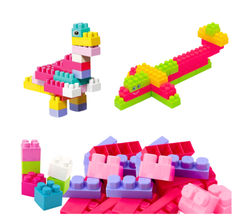 A set of building blocks is an ideal proposition for children from 3 years of age. Made of high-quality plastic, the blocks are available in pastel colours - pink, yellow, green and blue - which makes them eye-catching and encourages creative play.