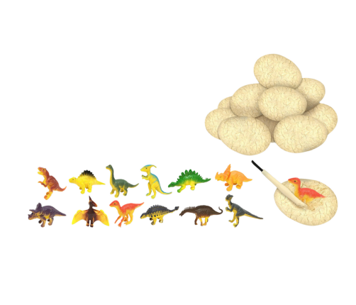The dinosaur egg set and board game are great fun that combines education with entertainment. The set includes 12 dinosaur eggs that children can discover using special excavation tools. Each egg contains a dinosaur figure that can be extracted using the accessories provided, such as a hammer, chisel and brush.