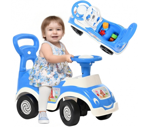 Woopie 4в1 каталка станет первым многофункциональным транспортным средством для вашего ребенка! Конструкция каталок позволяет адаптировать игрушку в 4 возможных варианта, которые можно использовать как дома, так и на улице. Первый вариант идеален для обучения ходьбе: ребенок делает первые шаги, опираясь на ручку. Второй вариант служит в качестве толкателя. Третий вариант предназначен для более старшего ребенка — его можно использовать как каталку, отталкиваясь ногами, ребенок будет развивать моторные навыки (развитие мышц ног). Последняя функция — это сортировщик форм, который находится на сиденье и поможет развить мелкую моторику ребенка, обучая его подбирать формы. У каталок есть скрытое отделение, идеально подходящее для того, чтобы взять с собой и спрятать сокровища и игрушки. Ребенку принесет радость клаксон, издающий звук. Задняя ручка и рулевое колесо приятны на ощупь, чтобы обеспечить комфорт для ребенка. Эти каталка станет отличной игрушкой на раннем этапе развития ребенка.