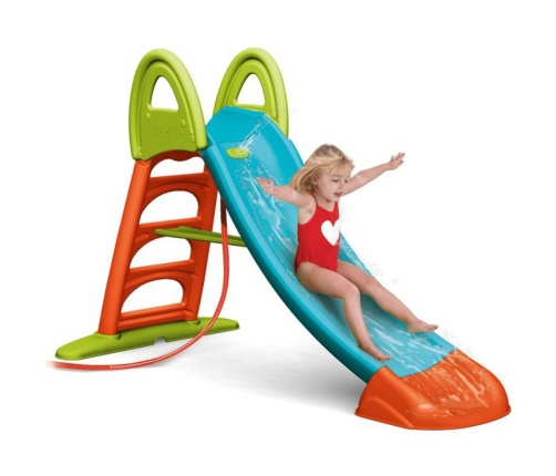 Kolorowa zjeżdżalnia hiszpańskiej marki Feber dla dzieci od 3 roku życia życia. Ślizg długości 190 cm, wygodna drabinka z uchwytami do wejścia dla dziecka zapewni bezpieczeństwo. Możliwość podłączenia węża ogrodowego do ślizgu i już mamy wodny plac zabaw idealny w upalne dni. Produkt wykonany z wytrzymałego i odpornego plastiku pokrytego powłoką ANTI-UV, która chroni przed blaknięciem.
