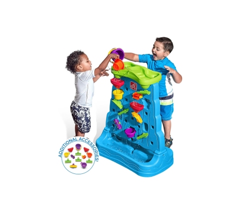Wspaniały zestaw do zabawy w wodzie Waterfall Discovery Wall™ to ekskluzywny produkt marki Step2. Dwustronna Góra z wodospadem została wyposażona w 13 różnych akcesoriów zapewniając tym samym wspaniałą zabawę dla całej rodziny. Dzieci mogą pozwolić sobie na zupełną dowolność, ponieważ każdy element wodnego labiryntu można przełożyć w inne miejsce tworząc własne projekty. Mali odkrywcy będą zachwyceni patrząc jak woda przepływa przez napotkane przez nią przeszkody. Cały zestaw został wyprodukowany w USA z najwyższej jakości tworzywa.