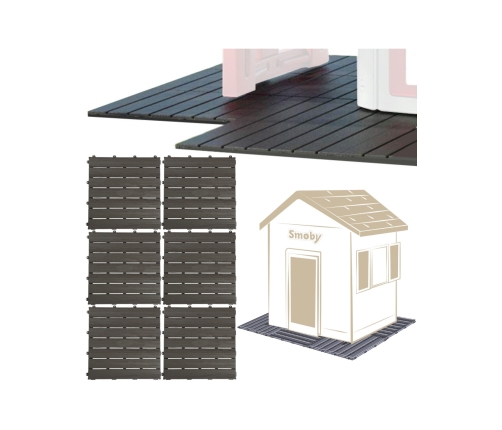 Płytki - panele podłogowe do domku ogrodowego od cenionego francuskiego producenta zabawek dla dzieci firmy Smoby. Panele podłogowe do domku ogrodowego. Panele zostały dostosowane do wszystkich domków. Zestaw składa się z 6 płytek o wymiarach: 45 x 45 cm.